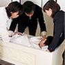 生前のお元気な面影が残るようにお化粧いたします。 お身体全体を綺麗に整え、白装束、旅支度を厳粛に執り行います。 |